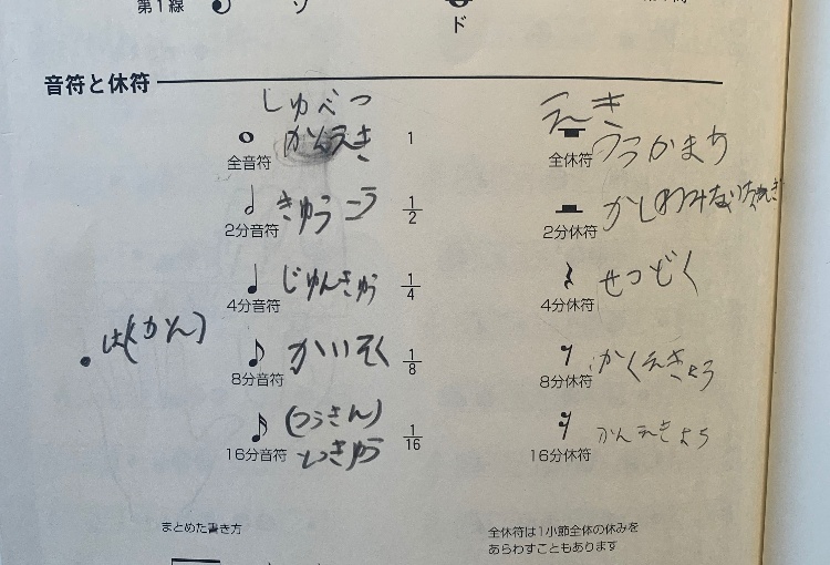 よくレッスンで音価を学習するのに、リンゴを使いますね?